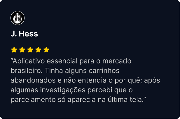 O cliente acessa sua loja e fica em dúvida sobre o valor das parcelas, principalmente para compras de maior valor. A falta de clareza no parcelamento pode levar ao abandono do carrinho.